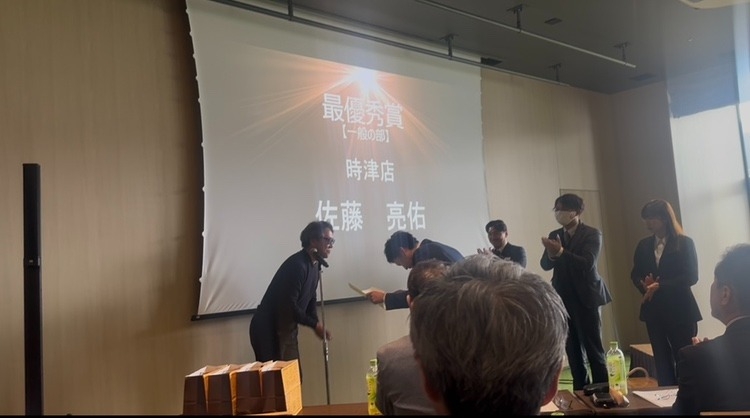 いざ当日を迎え、発表者を決める抽選時には、みんなが自分は当たるなと祈りを込めていましたが、見事に時津店から五反田スタッフと佐藤スタッフが発表者として選ばれました。どちらのスタッフもかなり緊張していましたが、特に佐藤スタッフに関しては顔が白くなりすぎてました。